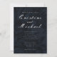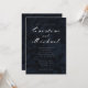 Modern victorian era vintage elegant script dark floral ornamental wedding invitation with a blue tint.