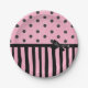 Dark Pink and Black Polka Dot Striped Paper Plate