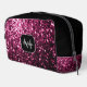 Dark pink faux glitter sparkles black Monogram Dopp Kit