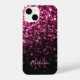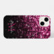 Dark Pink faux glitter sparkles bling Monogram iPhone Case