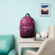 Dark pink glitter sparkles Monogram Printed Backpack. Cool fashion accessory bag for her. Beautiful girly glamourous shiny glitters sparkles design. Photo of sparkles, not real glitter! Create a unique and personalised backpack with a custom touch! Modern monogram with your initial and your name for that extra personal flair.