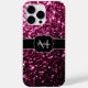 Dark Pink faux shiny glitter sparkles Monogram Case-Mate iPhone Case.