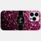 Dark Pink faux shiny glitter sparkles Monogram Case-Mate iPhone Case