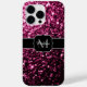Dark Pink faux shiny glitter sparkles Monogram Case-Mate iPhone Case