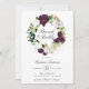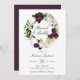 Elegant floral bridal brunch invitations featuring "Brunch & Bubbly" surrounded by wreath of dark plum and white watercolor flowers accented by faux rose gold foil and green leaves. Personalise the plum floral invites by adding your shower details below. The invite reverses to a solid dark plum coloured background. Designed to coordinate with our Dark Plum Floral wedding collection.
