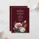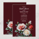 Elegant dark pretty red and pink white rose floral cottage core wedding bridal shower Invitation