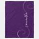 Dark Purple and White Curly Signature Name Fleece Blanket