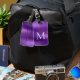 Modern Dark Purple Brushed Metal Script Monogram Cute Bag Tag
