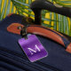 Dark Purple Brushed Metal Script Monogram Glam Luggage Tag