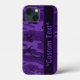 Camouflage pattern smartphone case in dark purple with editable text field. Customise with up to 15 letters, numerals or symbols.