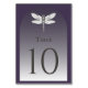 Add a modern touch to your reception tables with this Dark Purple Dragonfly Wedding Table Number Card. Card design features a simple and elegant dragonfly with elegant script and modern typography for the bride and grooms' names and wedding details. Perfect for the couple having a dragonfly theme wedding. Additional wedding stationery and supply available with this design as well.