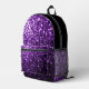 Purple faux glitter sparkles Printed Backpack. Cool fashion accessory bag for her. Beautiful girly glamourous shiny glitters sparkles design. A unique and personalised girly backpack. No messy glitter to the touch! We use photo of sparkles, not real glitter!