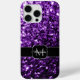Purple faux glitter sparkles Monogram iPhone 15 Case. Personalise Sparkly iPhone case with your initial and name. Beautiful girly glamourous shiny glitters sparkles. Photo of sparkles not actual glitter!