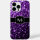 Dark Purple faux shiny glitter sparkles Monogram Case-Mate iPhone Case. Personalise Phone Accessory with your initial and name. Beautiful girly glamourous purple shiny glitters sparkles. Photo of purple sparkles not actual glitter!