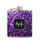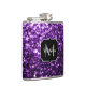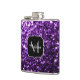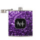 Dark Purple faux shiny glitter sparkles Monogram Hip Flask