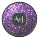 Dark Purple faux shiny glitter sparkles Monogram Hockey Puck