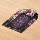 Elegant arch acrylic wedding invitation featuring a dark purple floral theme. The moody color palette is great for a fall wedding.