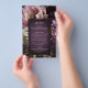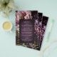 Elegant wedding menu flyer featuring a dark purple floral theme. The moody color palette is great for a fall wedding.