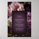 Elegant wedding welcome sign poster featuring a dark purple floral theme. The moody color palette is great for a fall wedding.