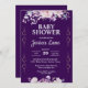 Dark Purple Floral Baby Shower Invitation