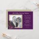 Invite guests to a silver or gold wedding anniversary celebration / renewing vows ceremony with custom invitation template. Easily personalise cards with dark purple lilac flowers and burlap look frame which holds a photo of the couple. Purple lilacs decorate the lower corner and reverse is tan to match the frame colour. Modern script font is added in paragraph form with as much or as little wording as needed.