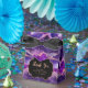 This elegant and glamourous birthday thank you favour box features a dark purple and pink agate marble background with faux pink glitter accents. The text combines handwritten script and modern sans serif fonts for a classy and sophisticated look. The sequins and distressed texture creates the perfect blend of chic and grunge.