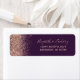 The left-hand edge of this elegant modern wedding return address label features a rose gold faux glitter design. The customisable text combines pale rose coloured handwriting, copperplate and italic fonts on a dark purple background.