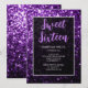 Personalise and customise faux sparkly Sweet 16 invitation. Sweet Sixteen collection by PLdesign. Dark purple faux shiny glitter sparkles. Beautiful girly glamourous dark purple shiny sparkly glitters. Photo of deep dark purple sparkles glitter! Faux sparkles!