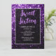 Dark purple sparkles Sweet 16 elegant script Invitation