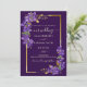 Dark Purple Violet Wedding RSVP QR Code Gold Frame Invitation