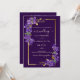 Ideal for couples who prefer a clean and elegant wedding invitation format, this design presents all essential details on a single card while maintaining a sophisticated and romantic aesthetic. The luxurious dark purple background combined with floral artwork creates a timeless look, perfect for formal weddings, evening celebrations, and black tie events.