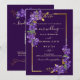 Elegant dark purple wedding invitation featuring delicate violet florals and refined gold accents. This flat card design includes a modern QR code RSVP on the back, allowing guests to respond quickly and conveniently.