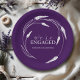 Celebrate your love with these wedding paper plates, featuring the words "We're Engaged" in elegant script typography, framed by delicate floral line art on a dark purple background. A modern yet simple design, these plates add a sophisticated touch to your engagement party decorations and are perfect for creating memorable engagement party ideas.