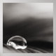 Black and white macro of a crystal pure rain drop on a flower.