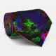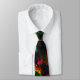 Abstract art tie featuring a random bright on dark design in greens, reds and blues.