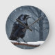 Black Raven Bird sitting on a tree branch on a dark snowy winter night. #raven #blackbird #clock