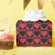 A wrapping paper built with a dark red and black chequered pattern with hearts. Customise the black background colour among several options.