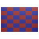 Stylish geometric fabric features a bold chequered pattern comprised of dark red rectangles and dark blue rectangles in this clean digital design.