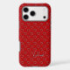 Dark Red Colored iPhone Cover With Little Hearts Pattern And Your Custom Name