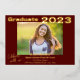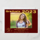 Simple photo graduation invitation with a dark red / maroon background and true gold foil for the text. This graduation card has room for 1 picture and can be 100% personalised. If you would like to add more text or other information feel free to use the back of the card by editing it with the editing tool rather than only filling in the templates. Make it uniquely yours!