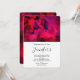 Birthday invitation with a cool abstract background. Dark red and purple brush strokes create a bold modern abstract design.