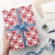 Dark Red and White Chequered Pattern With Hearts Wrapping Paper
