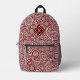Dark-red and white paisley pattern monogram printed backpack