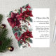 This Christmas card design features a festive and elegant layout with a white background and a lush botanical border along the left side. The arrangement includes vibrant red and creamy white poinsettias, sprigs of holly, red berries, and rich green foliage, creating a warm and seasonal frame. The typography is graceful and refined, combining script and serif fonts to convey a sense of celebration and sophistication. The overall tone is inviting and joyful, perfect for a holiday gathering filled with cheer and gourmet delights.