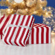 Wrapping paper with a dark red and white stripe pattern. Perfect for any occasion. Customisable.