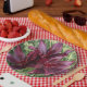 Add elegance to parties, picnics and social gatherings with these pretty paper plates that feature a photo image of dark red Asiatic Lilies against a background of green Sedum plants. A lovely, floral design! Select your paper plate style and size.