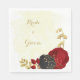 Romantic dark red & black flowers with gold leaves botanical wedding paper napkin.