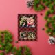 Modern and festive plaid photo holiday card features a collage of 3 photos framed by a border and accents of real gold foil and hand painted watercolor dark red and black buffalo plaid check patterned background. Personalise the custom "Merriest Christmas" text with your preferred wording, family name, and the year. The back of the card includes an additional photo with custom holiday message.
