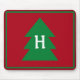 Dark Red Christmas Tree Custom Initial Elegant Mouse Pad