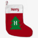 Dark Red Christmas Tree Custom Initial Elegant Small Christmas Stocking